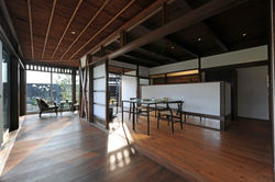 この家は大改造劇的ビフォーアフターでの舞台となった築80年の常滑にある リフォームです。カメラをリサイクルし販売しているご主人は、家族と納得できる地で 仕事をしながら自分らしく暮らすコトを願いました。廃虚のような草木が覆い茂り、建物もかなり痛んでいました。何より基礎の下がサラサラの砂であり長期的な問題が予測されました。それを外構から しっかりサポートして、クルマが乗り入れ出来 停まれるスペースを確保。コストを抑えながらも、元々の優雅な別荘の雰囲気をしっかり出すことに専念しました。大広間の明るい場所をキッチンダイニングにして、広い縁側をリビングと捉えました。地元の常滑焼きの浴槽やタイルを使用しました。小笠原氏と組んで完成させた 日本100選に選ばれた庭のデザインも素敵で、施主さんも愛し てやまない場となったようです。